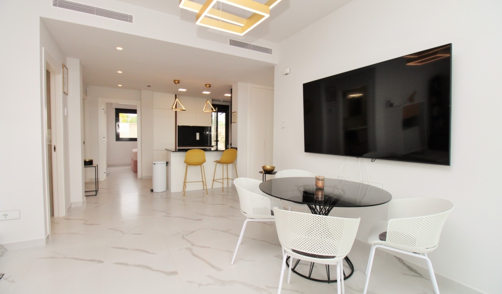 Situated in the newly constructed Bella Vista community of San Miguel de Salinas, this beautifully presented and ultra modern 2-bedroom, 2-bathroom ground-floor apartment combines modern comfort with relaxed Mediterranean living.