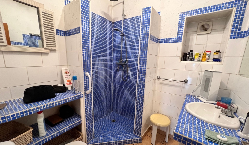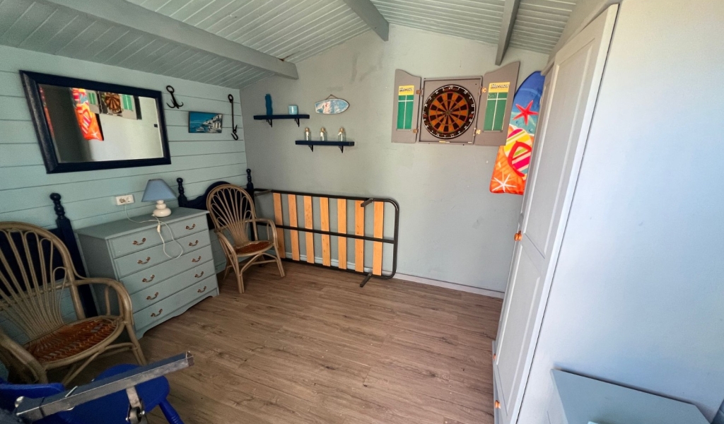 The home features 2 spacious bedrooms, 2 bathrooms, and a total built area of 115 m². Inside, you’ll find an independent kitchen fully equipped with modern home appliances, also a cozy living room with a fireplace, and air conditioning for year-round comfort. The built-in wardrobes and storage room provide plenty of space for all your belongings.