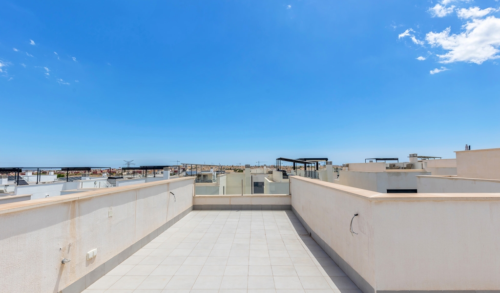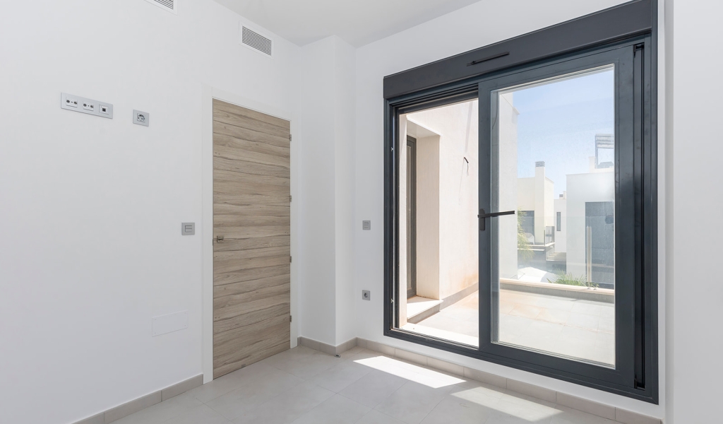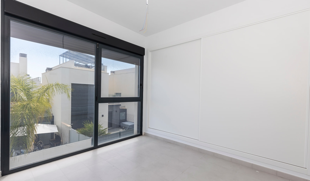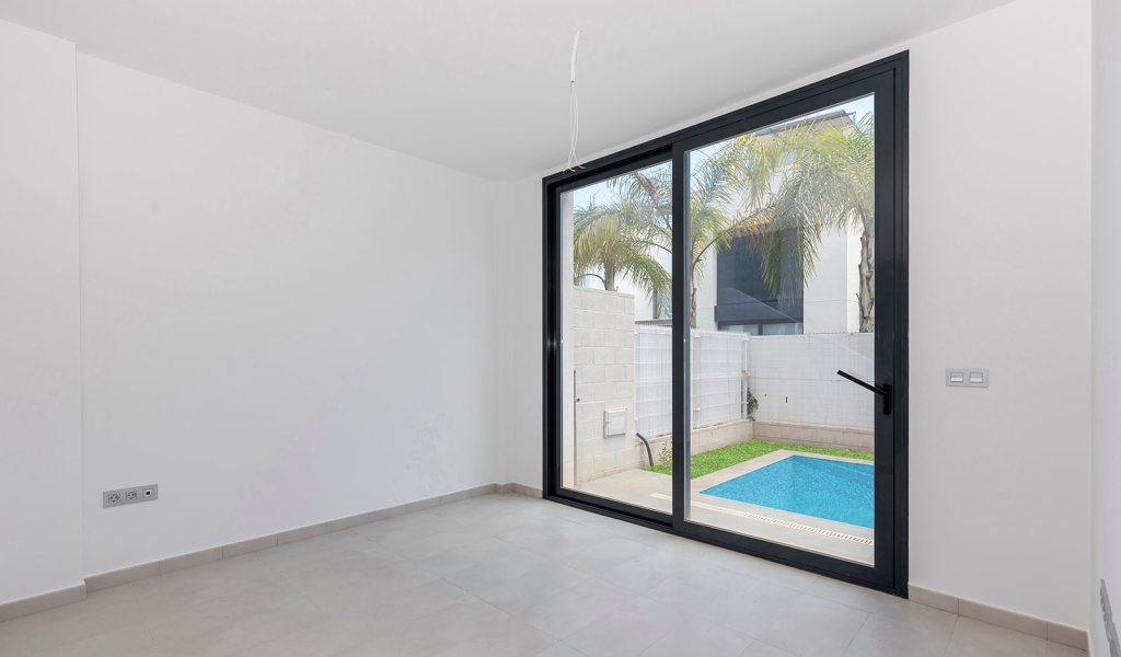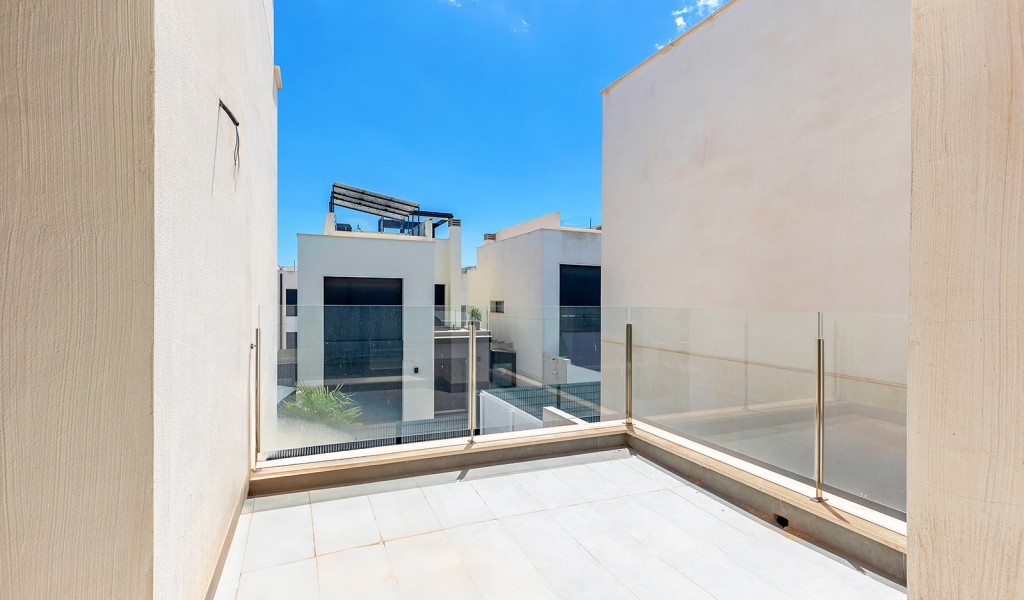 Modern villa with 3 bedrooms and 2 bathrooms. The property is distributed on 2 floors, on the ground floor there is a living-dining room with open kitchen, 1 bedroom and 1 bathroom. Upstairs we will find 2 bedrooms, a bathroom and a terrace. The house also has a large solarium of 37m2. The villa also has a private pool and private entrance for the car.