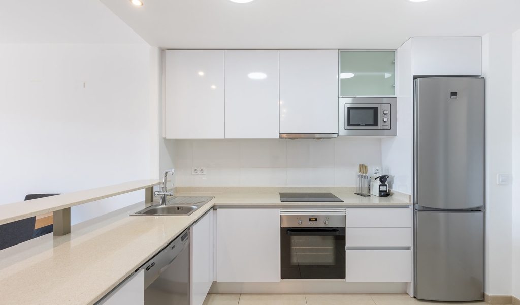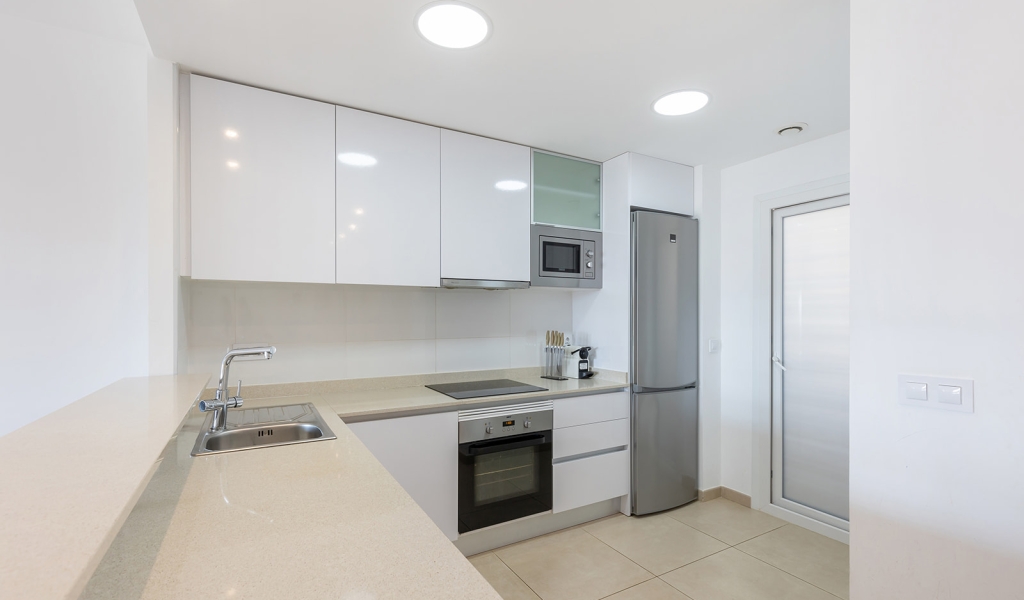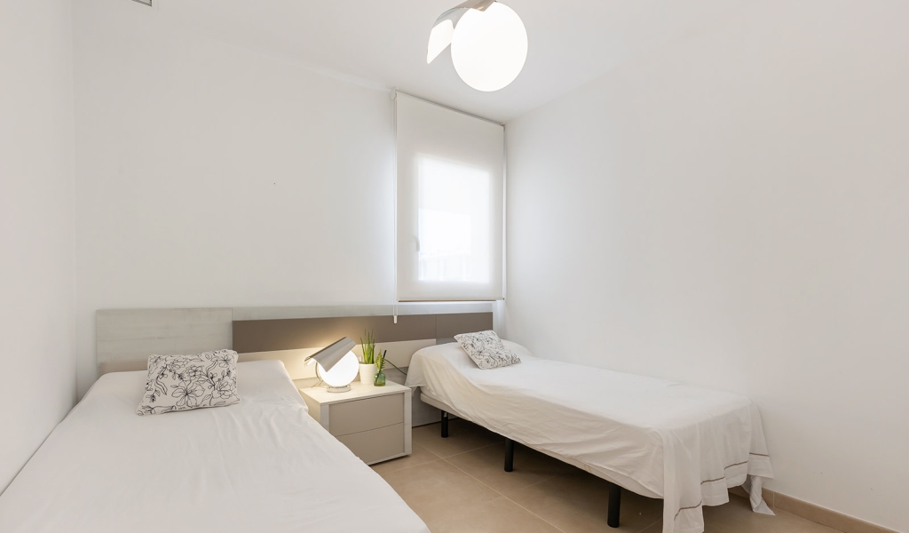 We present this beautiful apartment distributed in three bedrooms, one of them with en-suite bathroom. A spacious living room with kitchenette and direct access to the terrace of 22m2 overlooking the common areas of the residential.