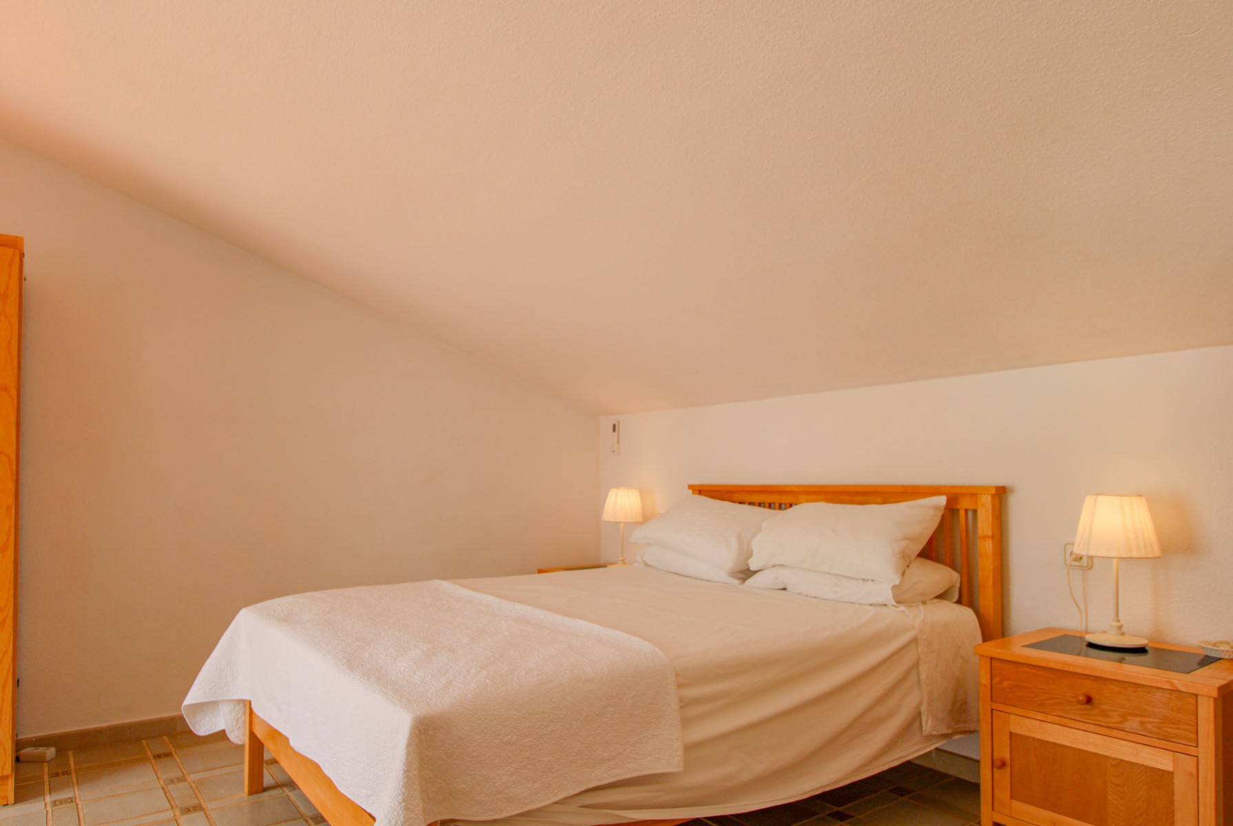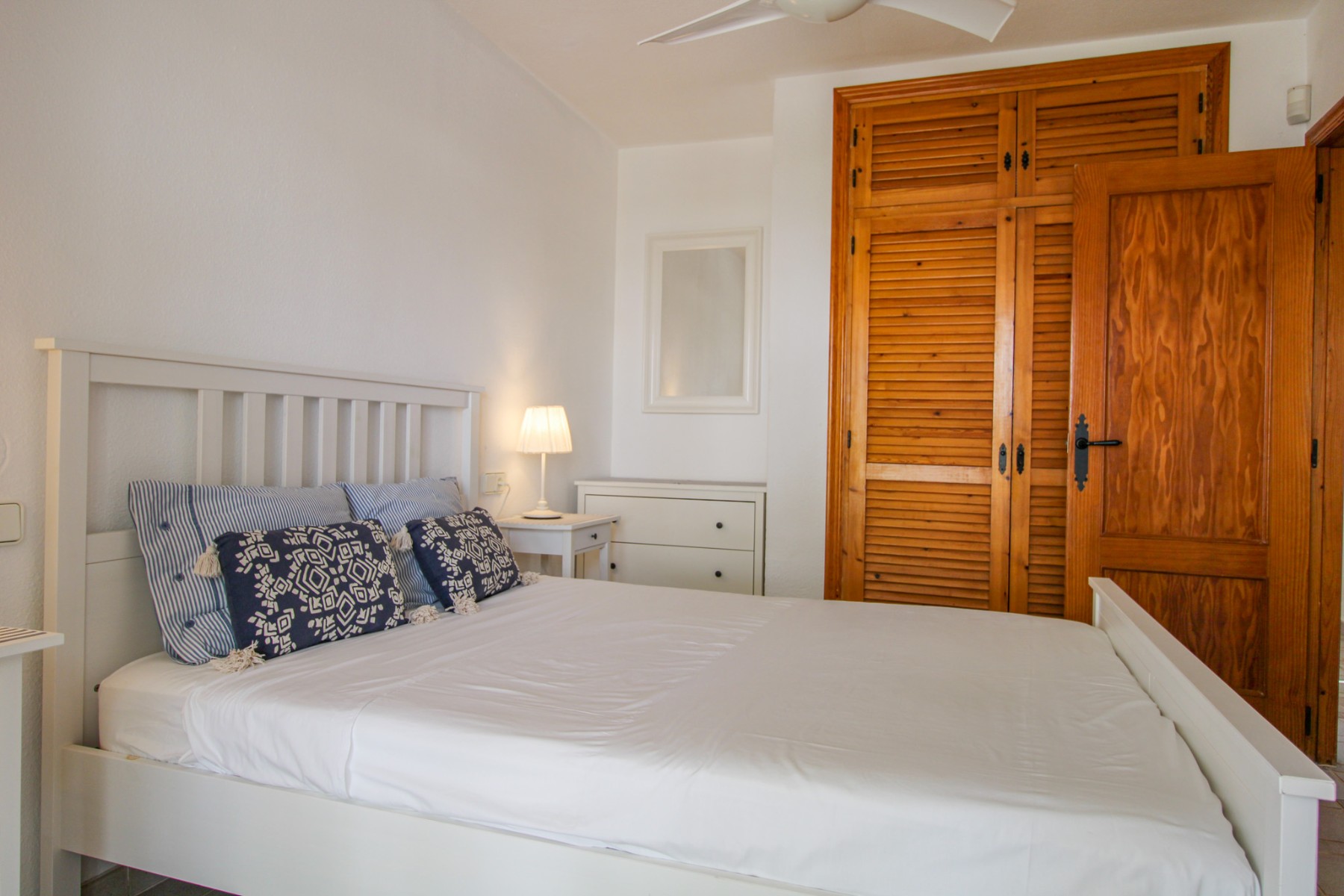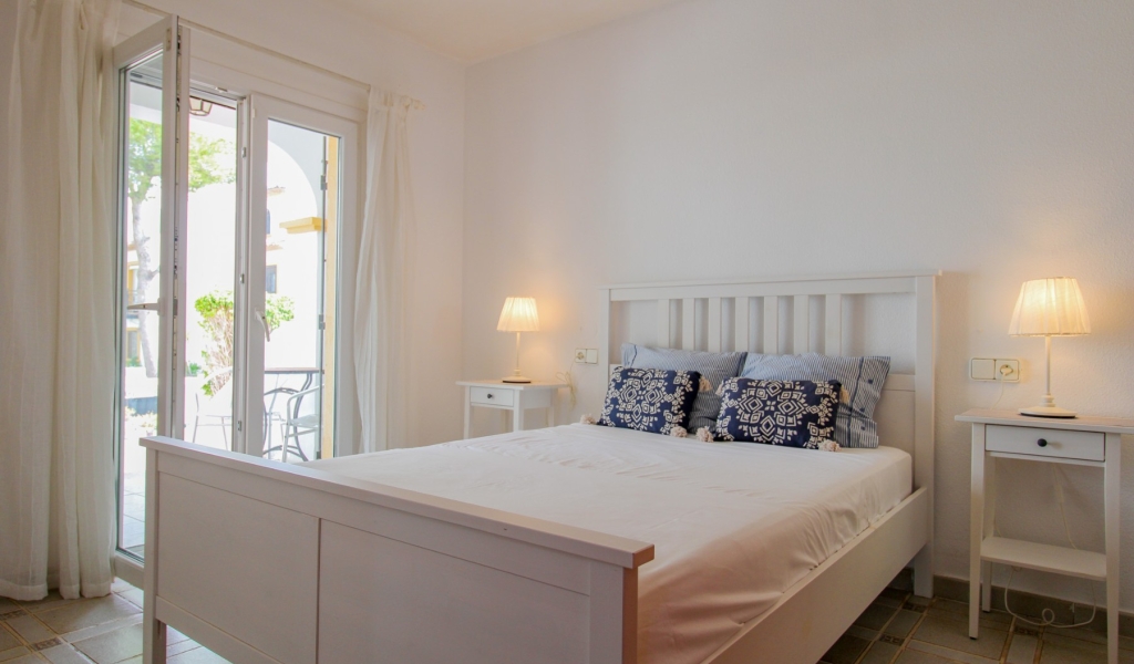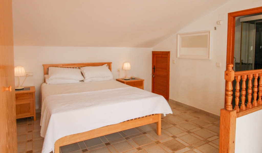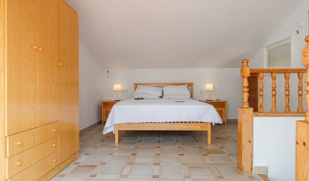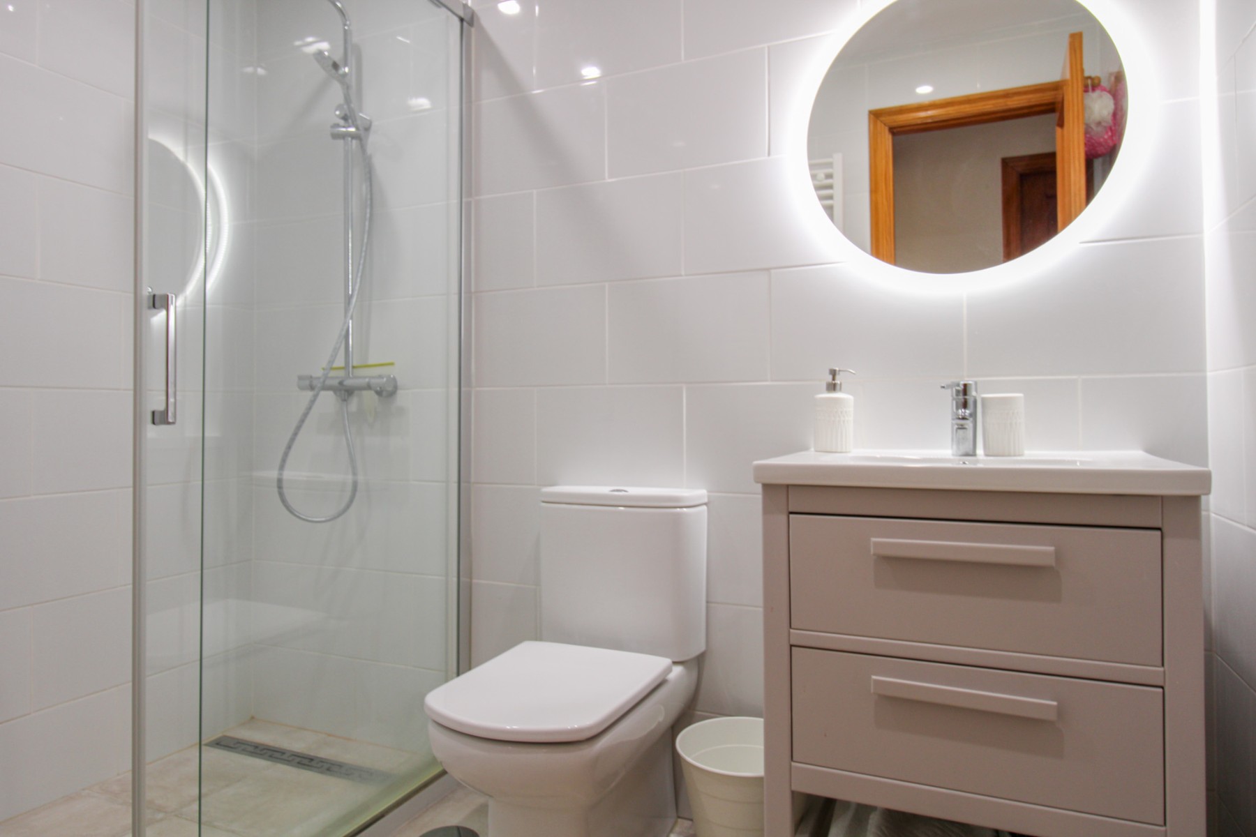 The property boasts spacious front and rear terraces with open views over the lush green areas, ideal for relaxing, entertaining, or enjoying the Mediterranean sunshine. Inside, you’ll find a welcoming lounge and dining area with a cosy fireplace, complemented by air conditioning and ceiling fans for comfortable living all year round. The home has been thoughtfully decorated, blending modern touches with the charm of traditional Spanish style. The layout comprises: 2 double bedrooms on the ground floor, both with fitted wardrobes, plus a family bathroom. On the upper level, the master suite enjoys an en-suite bathroom and access to a private terrace overlooking the pool.
